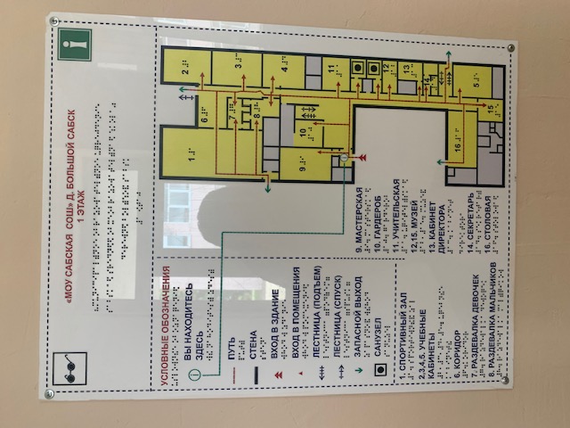 В ОО предусмотрено обеспечение доступа в здание для лиц с ограниченными возможностями и инвалидов: схема обеспечения доступа в МОУ "Сабская СОШ" ивалидов и лиц с ОВЗ в наличии пандус, кнопка вызова и личная помощь сотрудников (по требованию), вывеска со шрифтом Брайля, план эвакуации со шрифтом Брайля. - Паспорт доступности объекта для инвалидов и предоставляемых на нем услуг . |