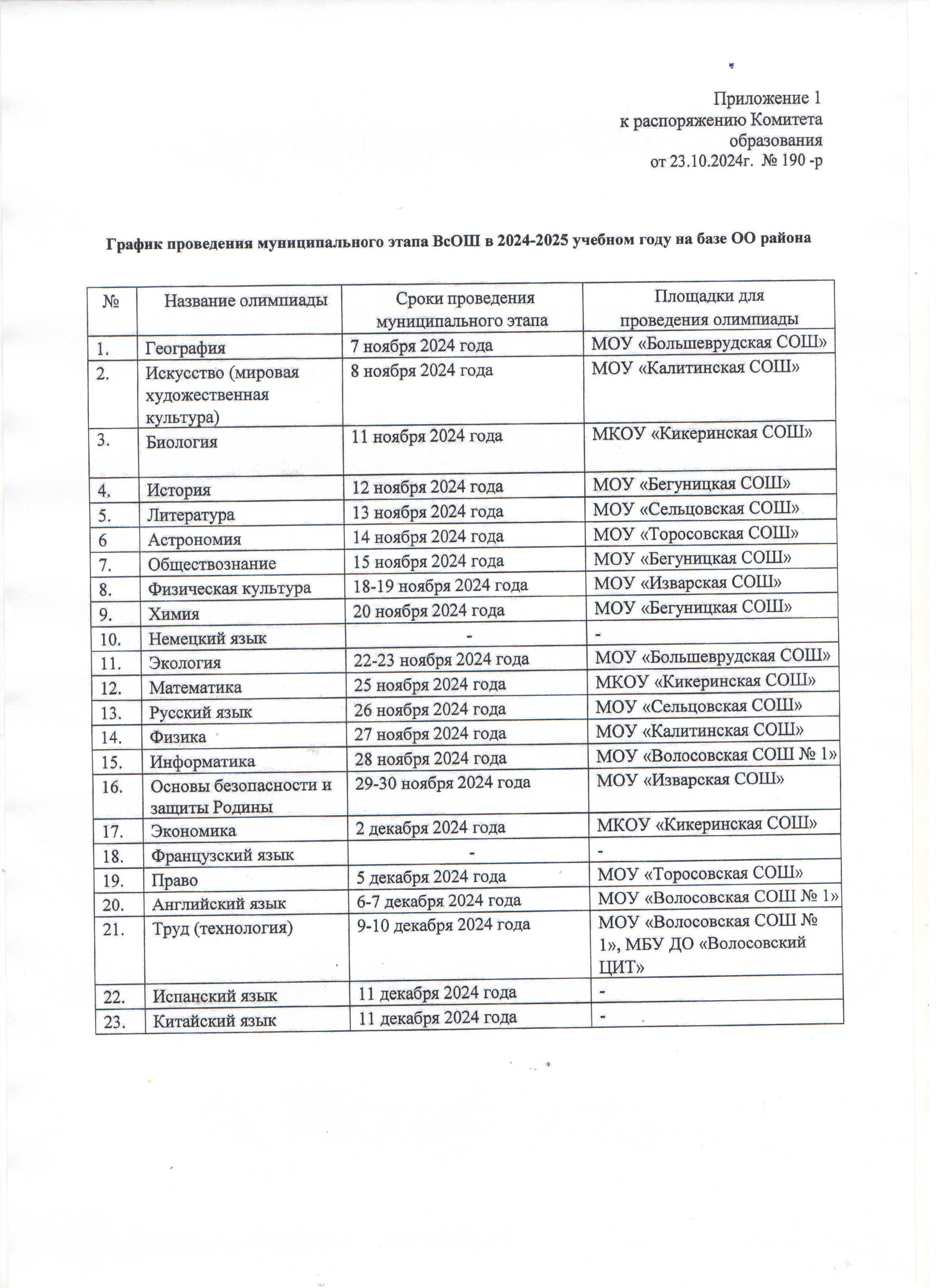 - График проведения муниципального этапа ВсОШ 2024-2025 гг